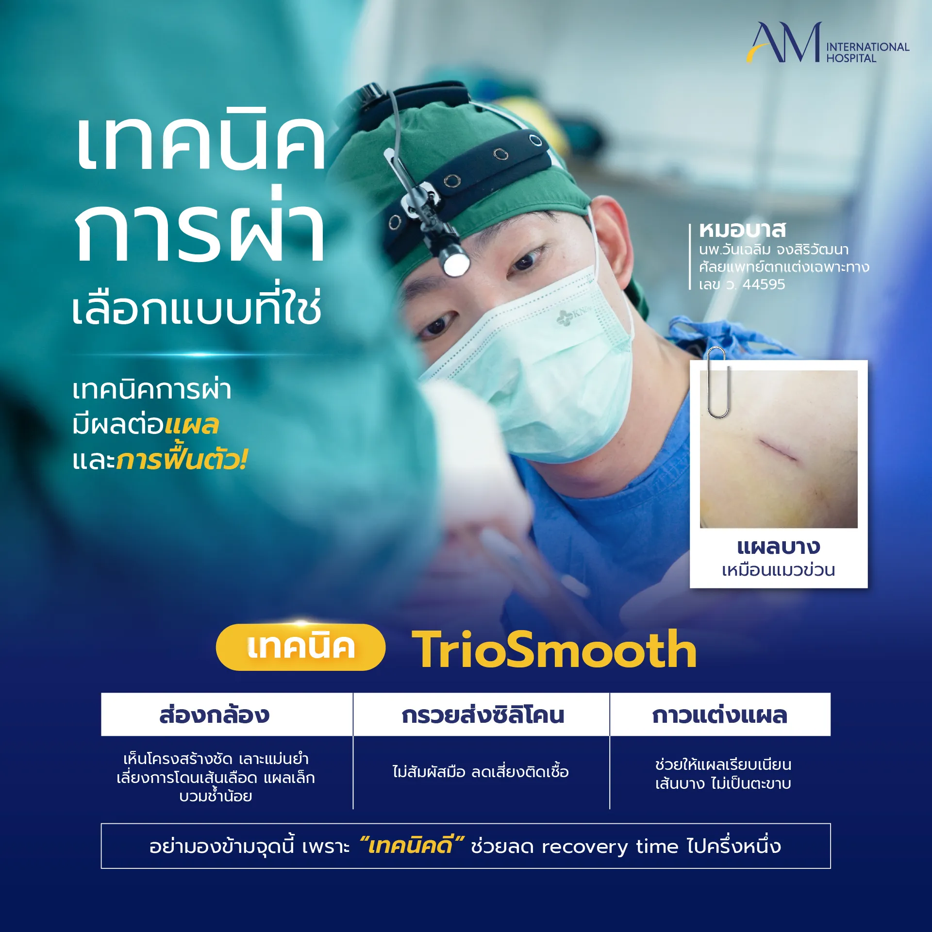 เพราะเราใช้เทคนิคส่องกล้องผ่าตัด ร่วมกับการใช้กรวยเพื่อวางซิลิโคน